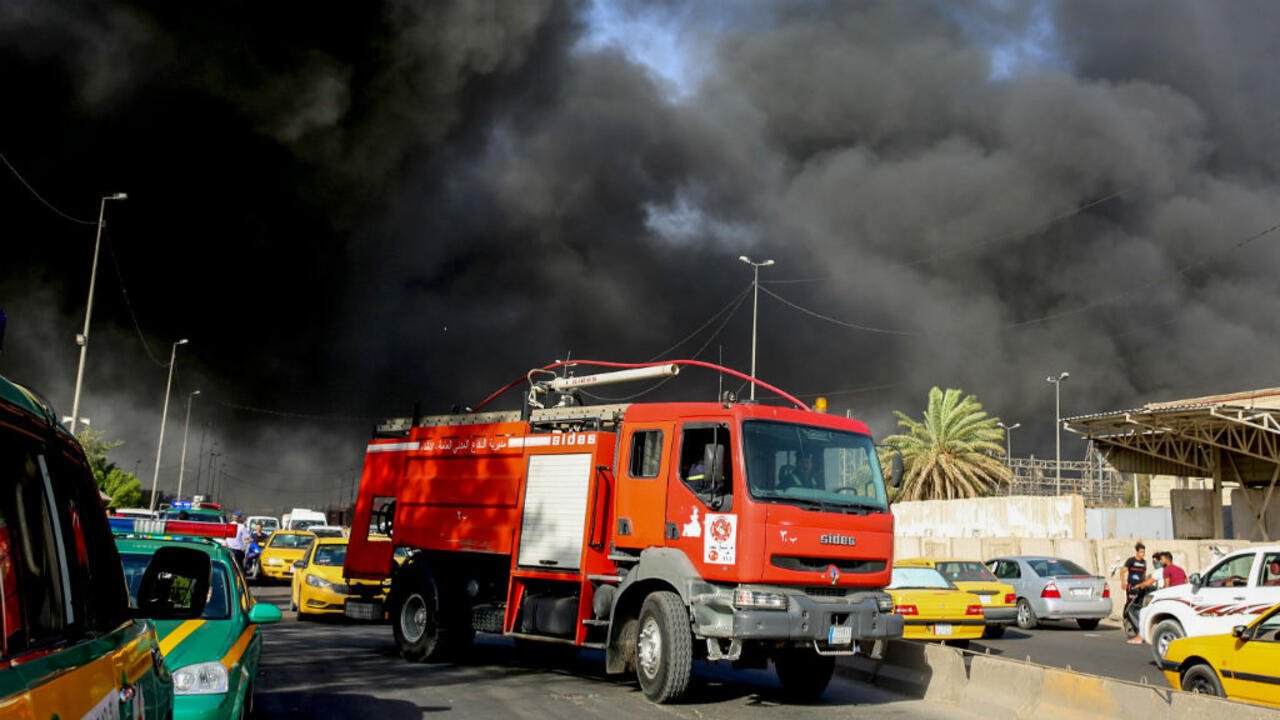 الدفاع المدني يستنفر لاخماد حريق اندلع خلف فندق بغداد