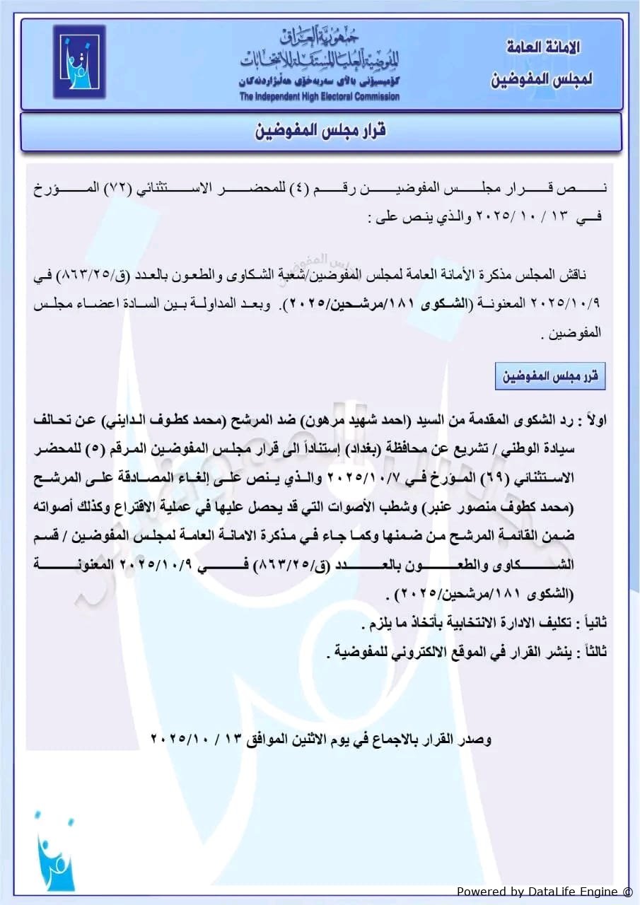 ادناه نص الوثيقة..